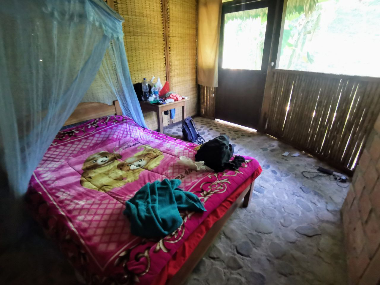 On poursuit notre aventure dans la selva (la jungle) amazonienne. D’abord dans la communauté Real Beni, située à 1h de bateau de la “ville” de Rurrenabaque. Ici, c’est la vie tranquille. Au milieu de la nature, on dort dans une hutte plutôt confortable (pour l’endroit) d’où on entend les chants des oiseaux exotiques (l’avantage à ne pas avoir de fenêtre, juste une moustiquaire).
