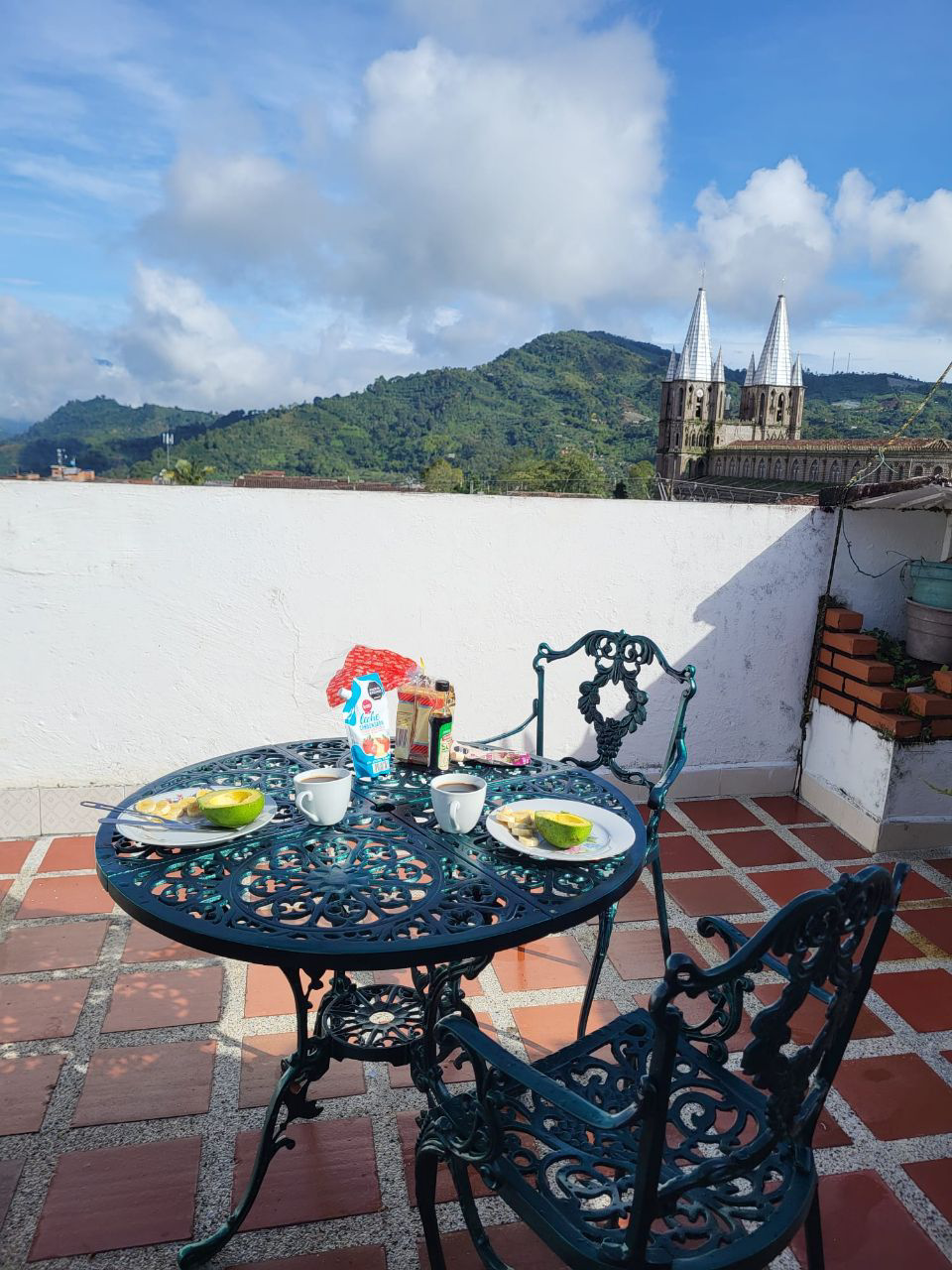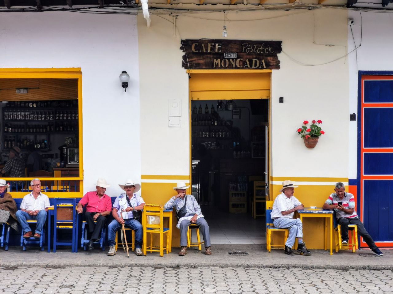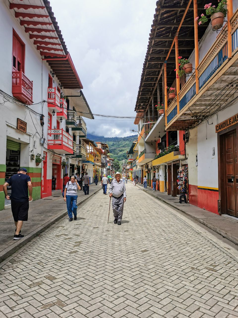 Dans ce village, on a l’impression d’avoir remonté le temps… Des petits commerces et des ateliers comme dans nos campagnes, une église dont les cloches sont sonnées manuellement, des cafés et restaurants où les petits vieux se retrouvent autour d’une tasse de tinto… Certains habitants portent encore le chapeau de cowboy et se déplacent même à cheval. Ils viennent au bar, et, sans même descendre de leur selle, ils boivent un coup ! Original !