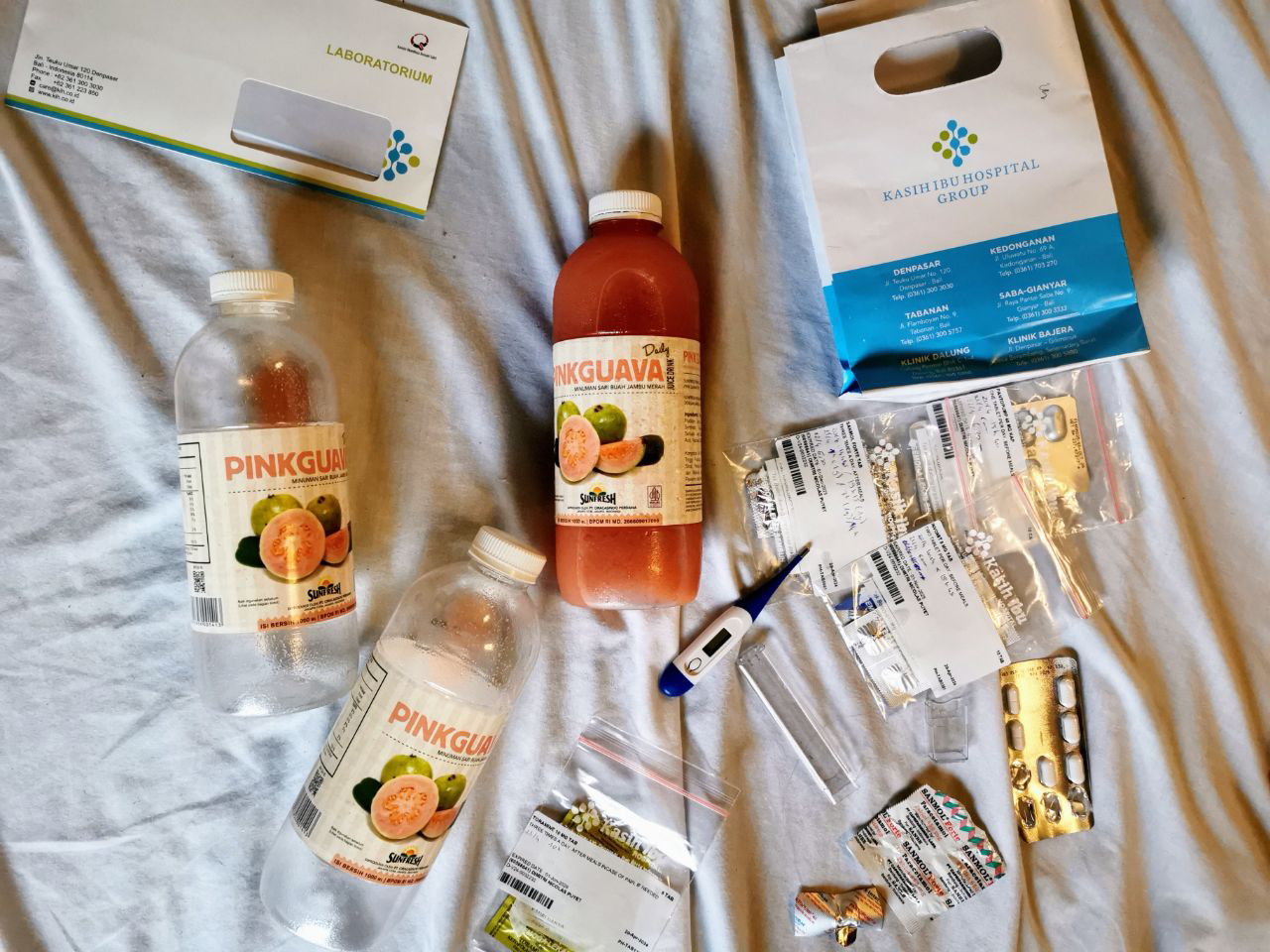 🏥🔴😷 Et surtout, Dim a chopé la dengue. 🦟🤒 Après une première nuit affreuse où il avoisinait les 40 de fièvre, en plus d’une envie de vomir, on a filé à l’hôpital dès le samedi matin. Le diagnostic ne s’est pas fait attendre bien longtemps, les cas explosent en ce moment (amis voyageurs, attention à vous).