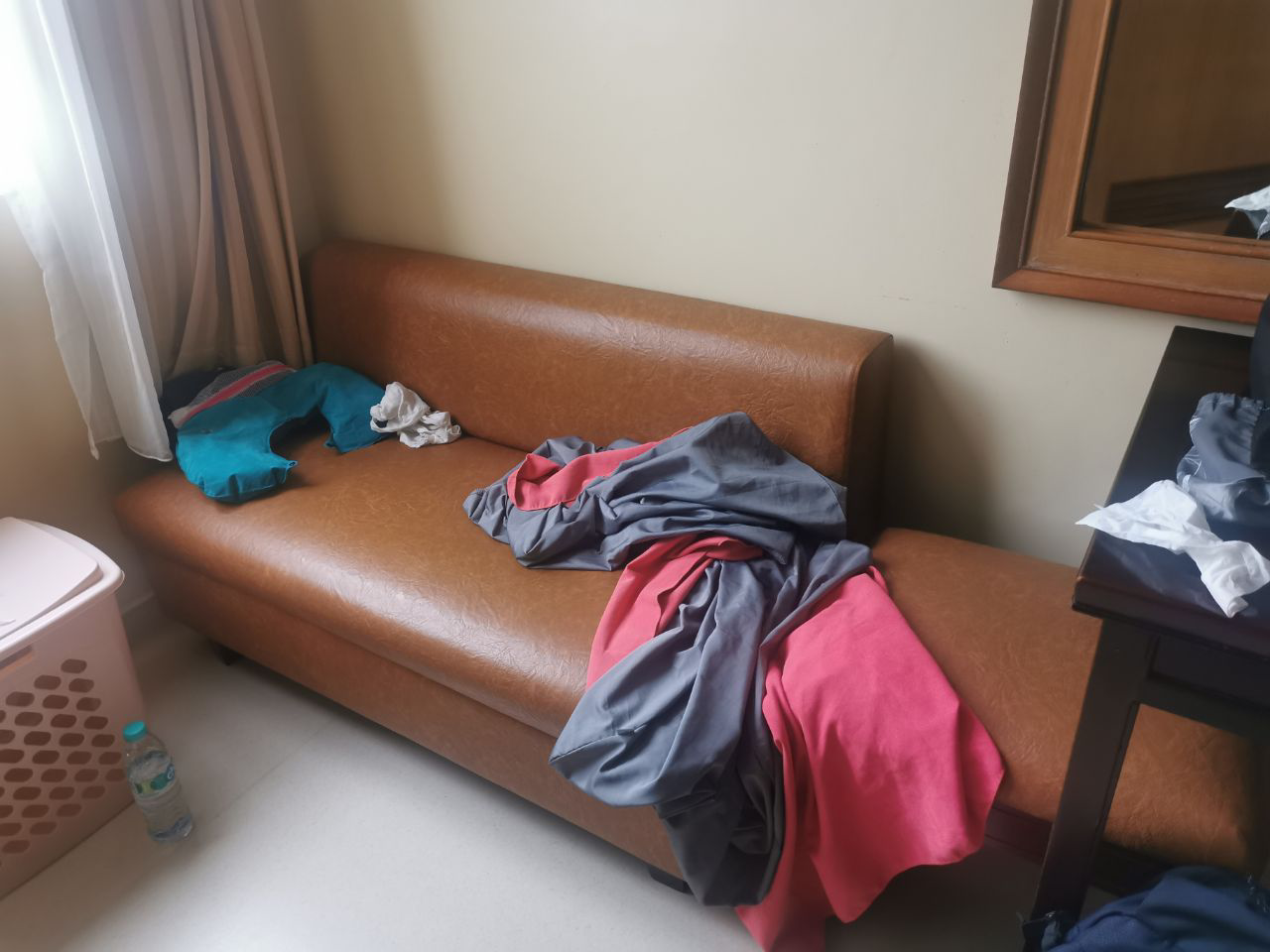 2 jours plus tard, le stress repart de plus belle. Dim doit être hospitalisé par précaution car le taux de plaquettes est encore descendu… Paradoxalement, il se sent mieux : il a un peu moins de fièvre et un peu plus d’appétit. Ouf. Mais il doit être sous surveillance. Les petites infirmières s’occupent bien de lui, il retrouve le sourire. Je me suis aménagée un petit lit de fortune pour dormir à ses côtés.