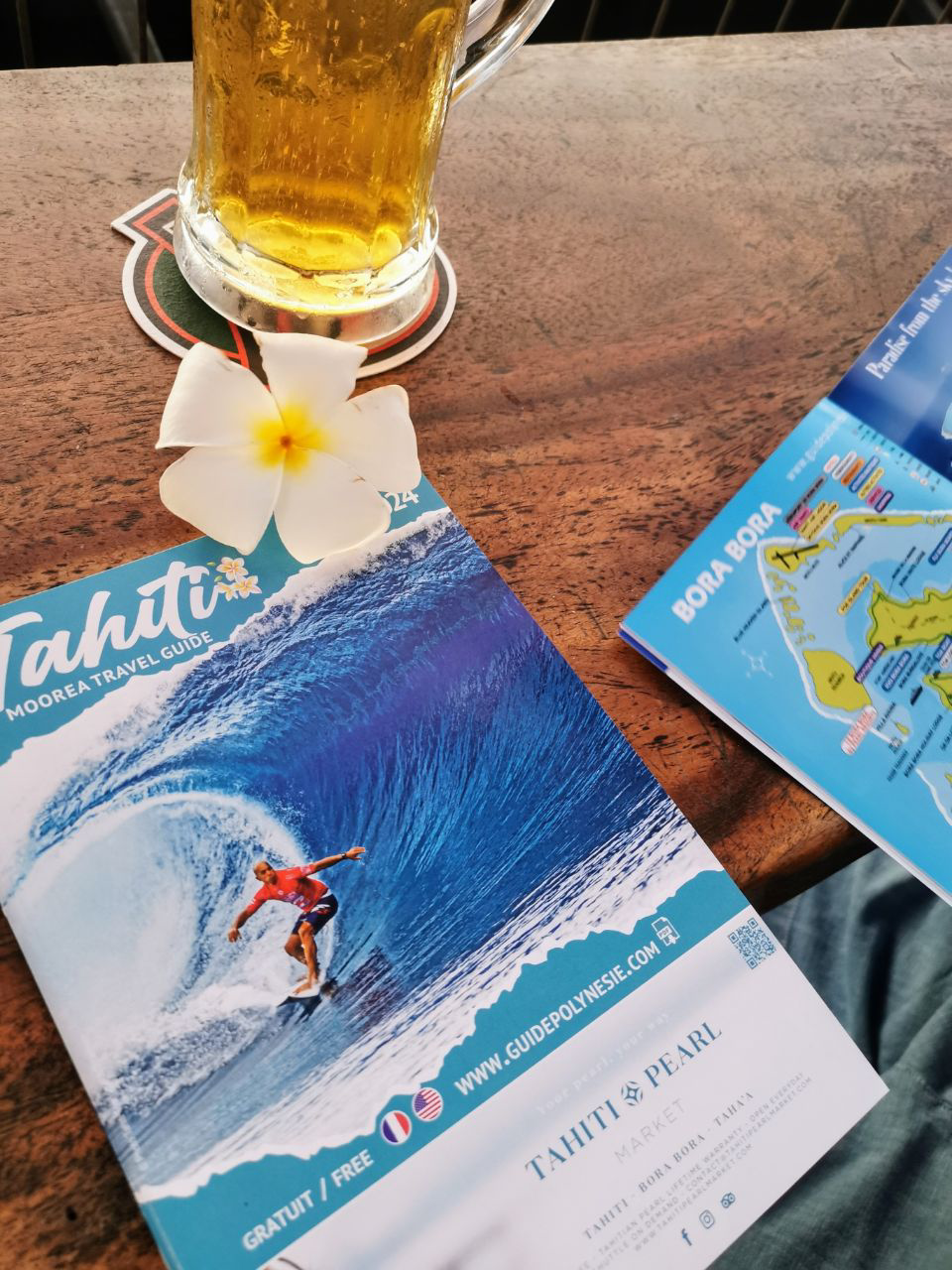 Découverte du marché couvert, où les créateurs vendent des bijoux en perles, en nacre, de la cosmétique à base de fleur de tiaré qui sent divinement bon… Et préparation de l’itinéraire autour d’une bonne bière !