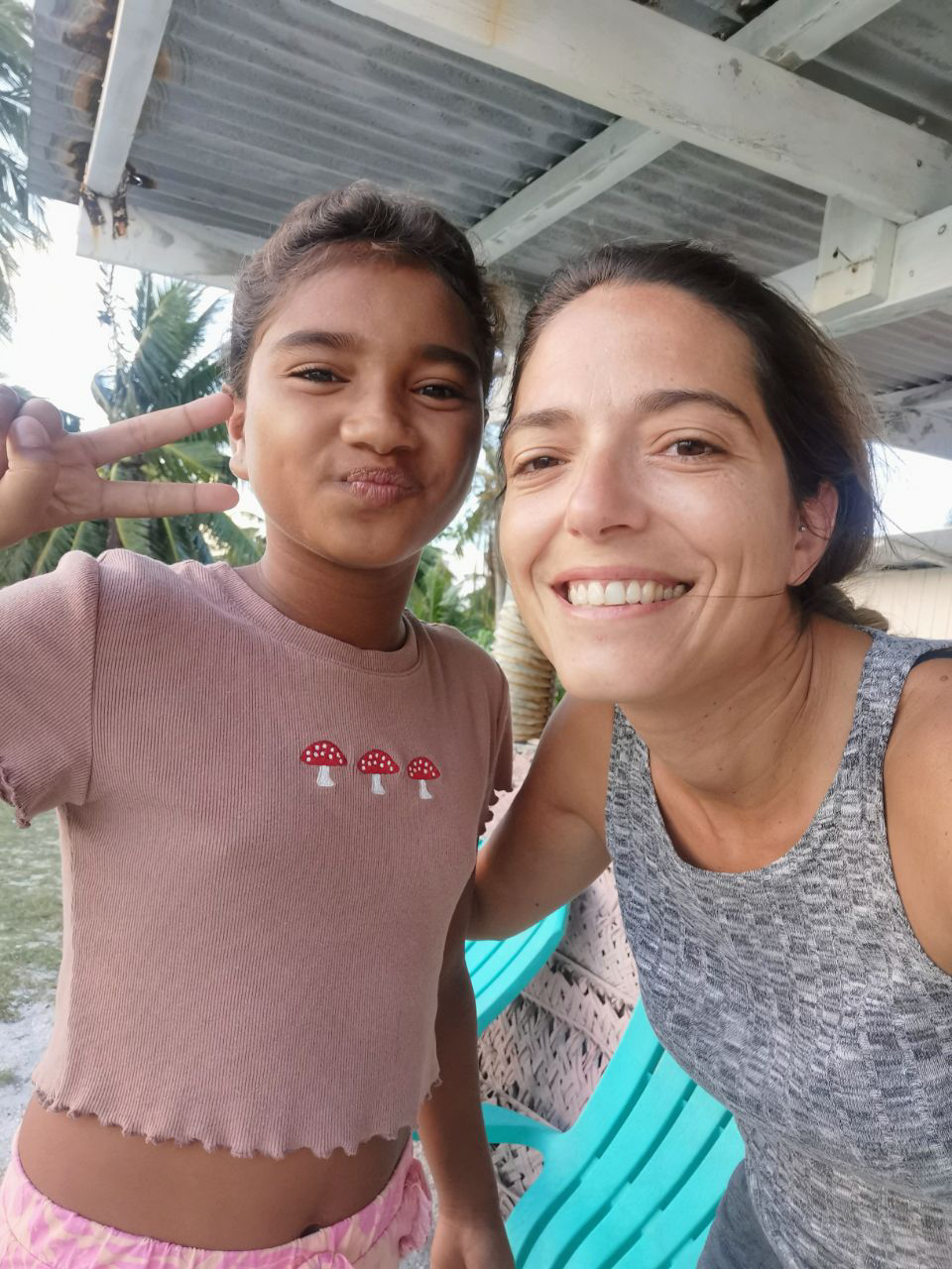 C’est une drôle d’ambiance. Peu de touristes, les habitants des motus sont un peu rustres et n’ont pas le même sens de l’accueil que sur les autres îles… Notre famille me fait marrer, ils sont farouches, et aiment bien se moquer de nous. Kuuvai, leur petite, est adorable. Ils n’ont pas la vie facile, malgré qu’on paie plus de 100€ pour dormir dans une tente Quechua (draps non fournis!).