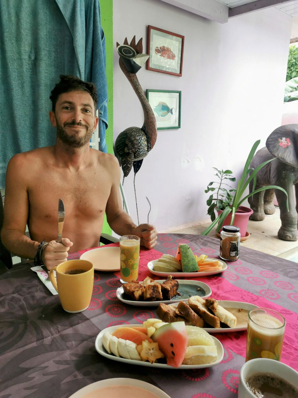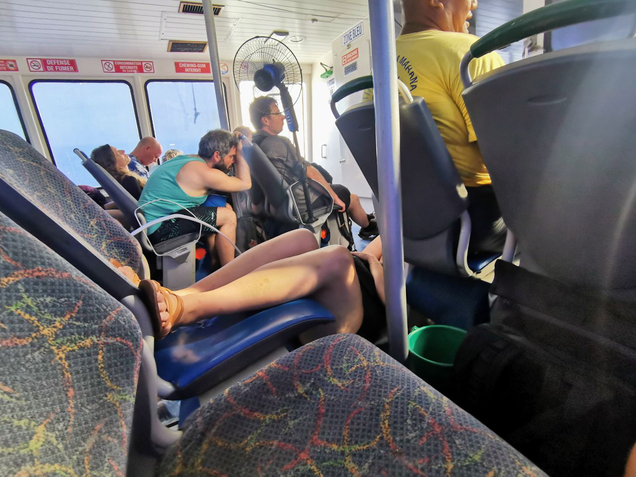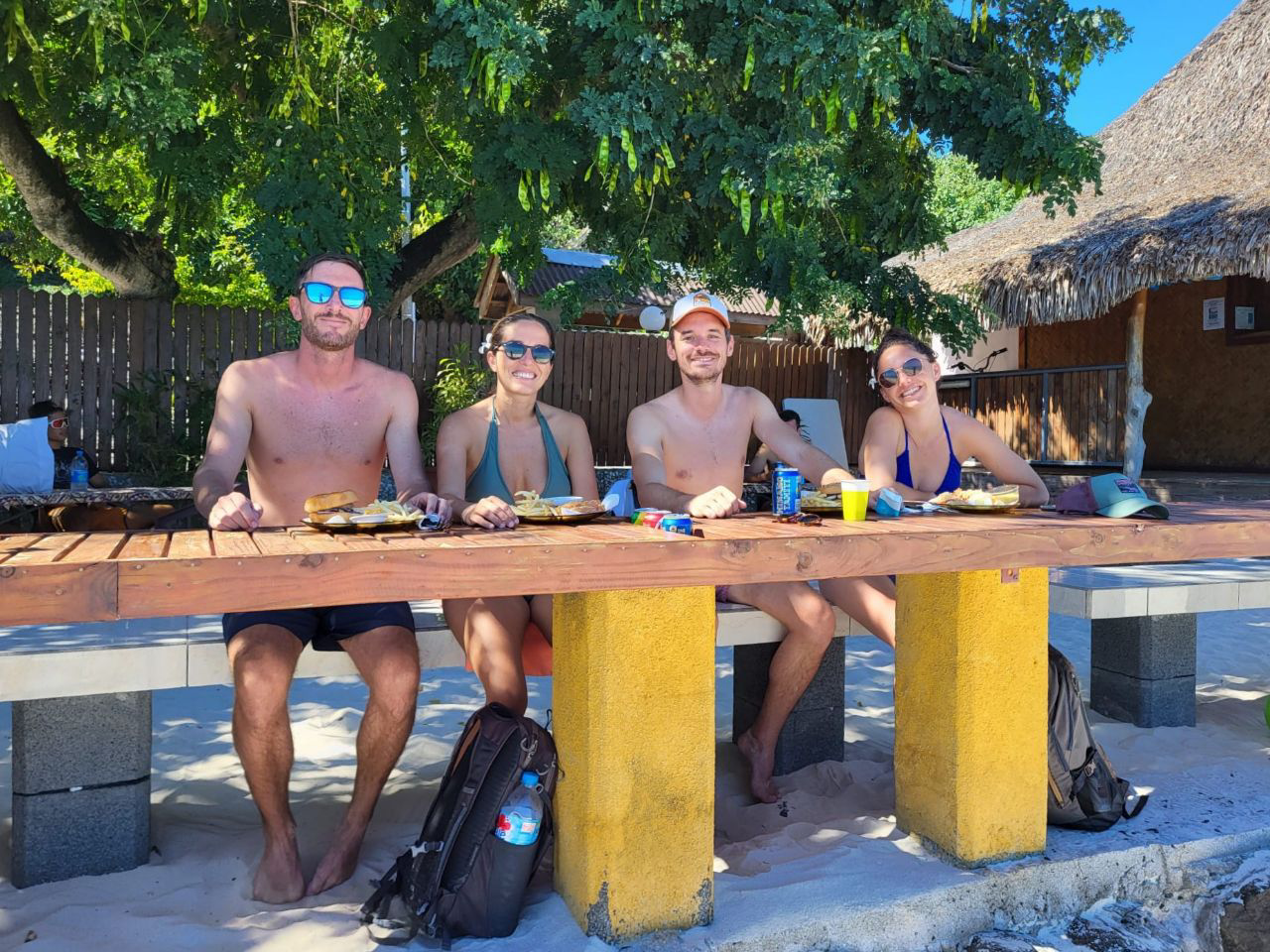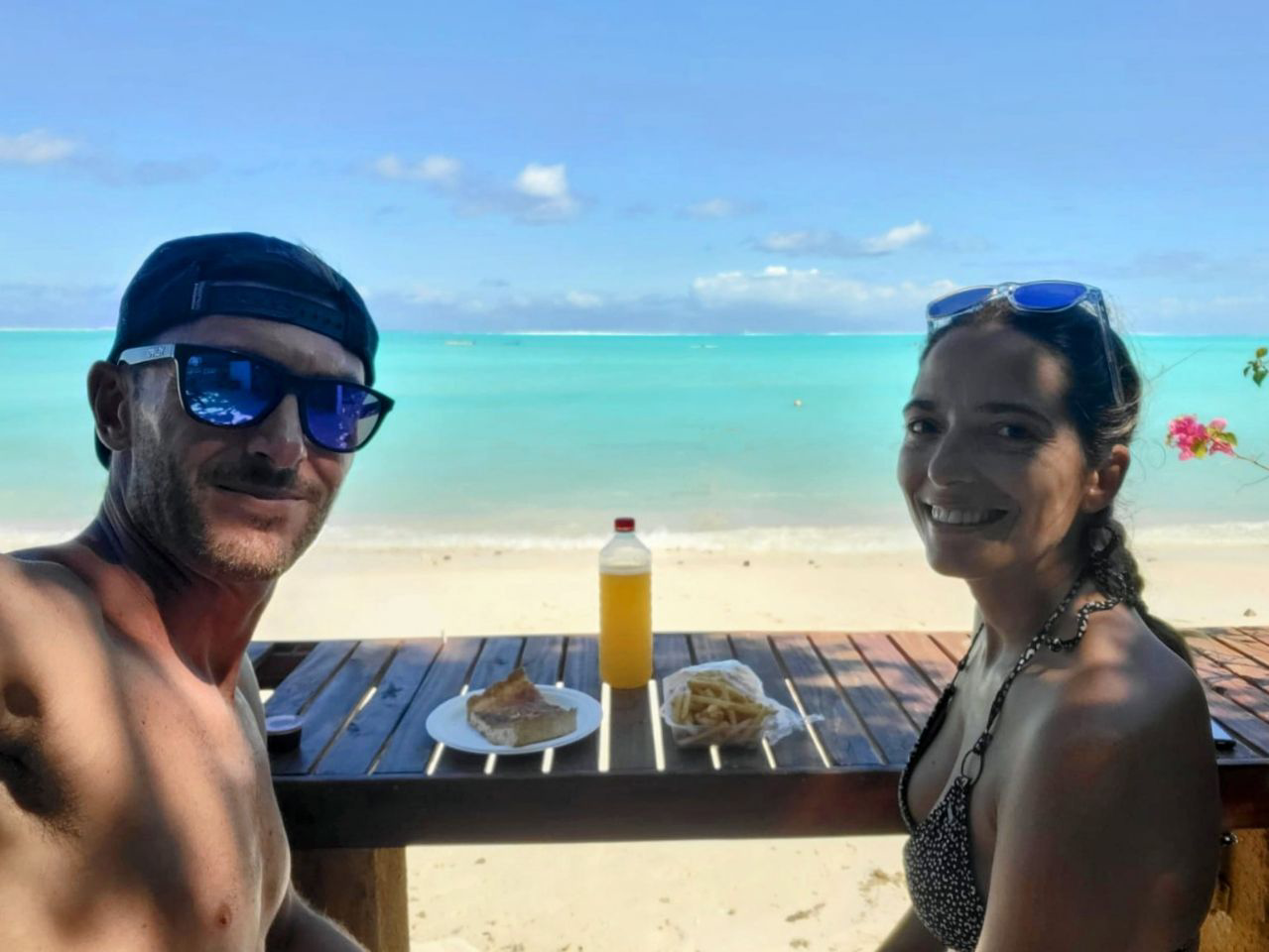 Trop contents d’avoir réussi à revenir ici depuis Maupiti ! Effectivement, le Vomiti Express porte bien son surnom ! Une grande partie des passager a fait la traversée un sceau à la main, ou même allongé par terre… 😂 Par contre, la loose, j’ai oublié mes chaussures de trail à l’hébergement… Par chance, un Colombien qu’on avait rencontré plus tôt a pu les récupérer et me les ramener en avion. Trop de chance, j’y croyais plus !