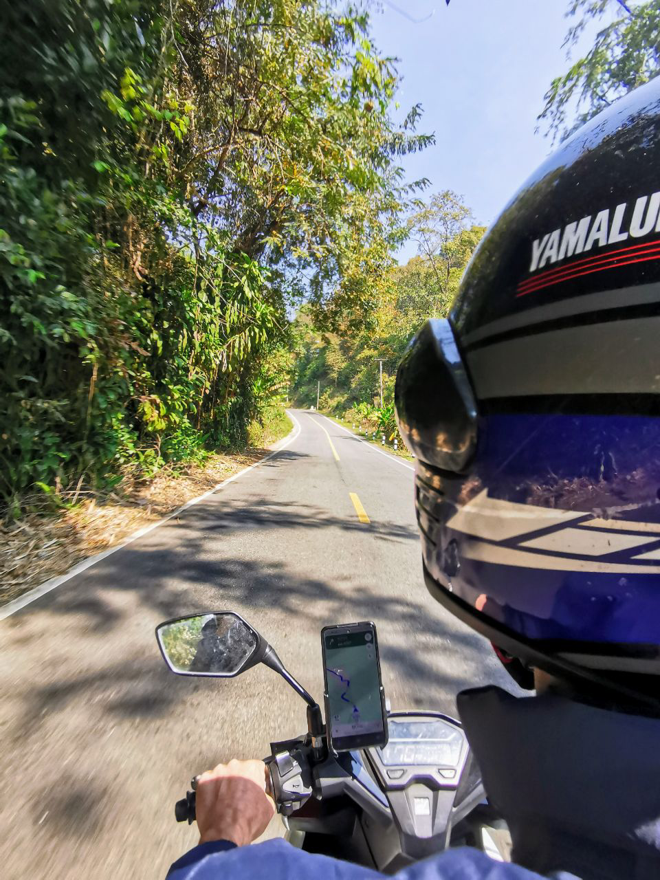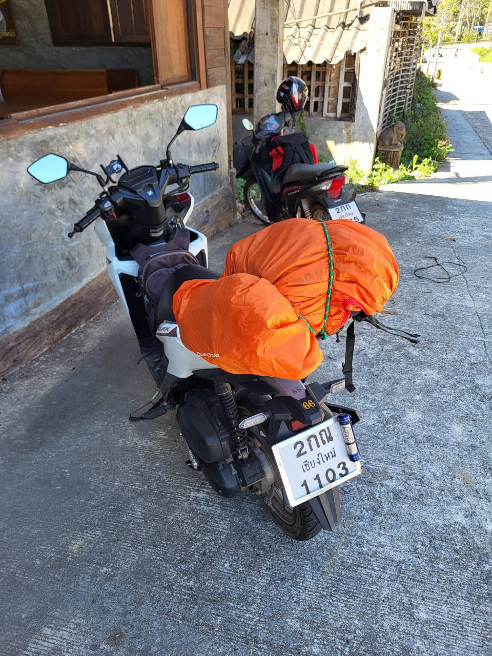 Et déjà il est temps de repartir ! L’avantage c’est qu’on voyage léger. On a laissé nos gros sacs à Chiang Mai et utilisons nos 2 petits sacs qu’on a tendu à l’arrière du scoot pour ces 9 jours 🤘