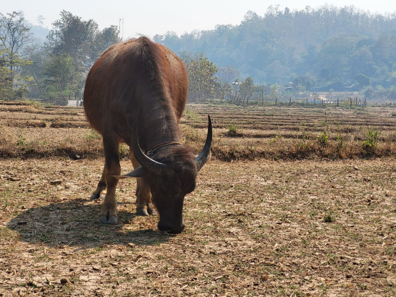 C’est entouré de rizières, au milieu desquelles ont peut se balader avec des buffles. Malheureusement en cette saison elles ont plutôt l’allure d’herbe sèche… En saison des pluies ce doit être vraiment magnifique. On a aussi grimpé jusqu’au Grand bouddha blanc qui domine la vallée, et vu un canyon. C’est une belle campagne 🌄