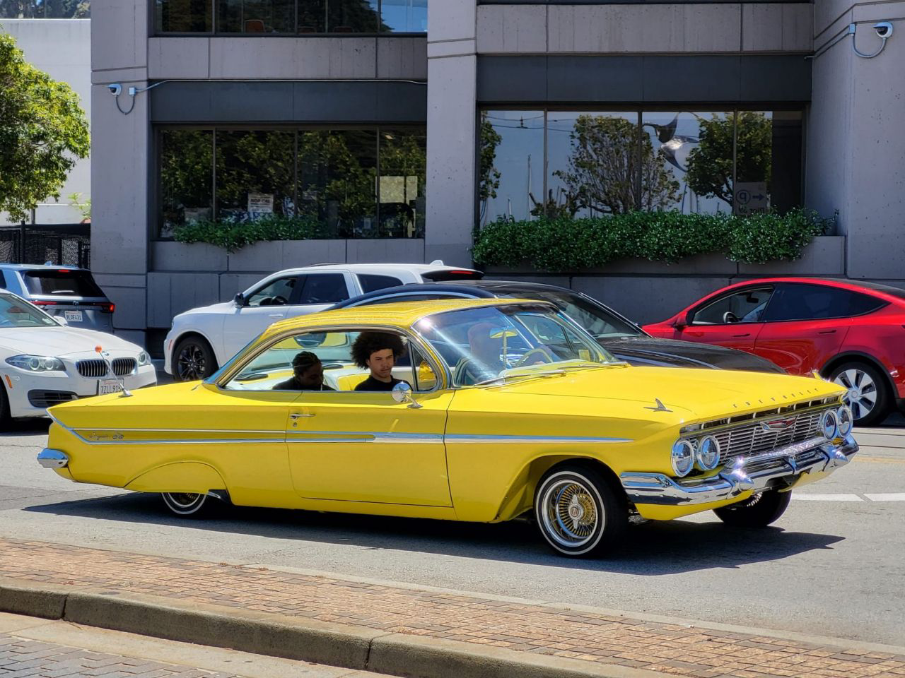 Nous voilà donc chaudement vêtus pour arpenter les rues (très pentues) de San Francisco, traversant des quartiers dans lesquels on trouve de très belles maisons victoriennes, des immeubles avec l’escalier de secours sur la façade … J’adore cette architecture. Devant, sont garées de belles voitures, allant du bon gros pick-up à la Chevrolet pur style des années 60. On croise aussi des taxis tout-automatiques, sans conducteur, c’est très impressionnant !